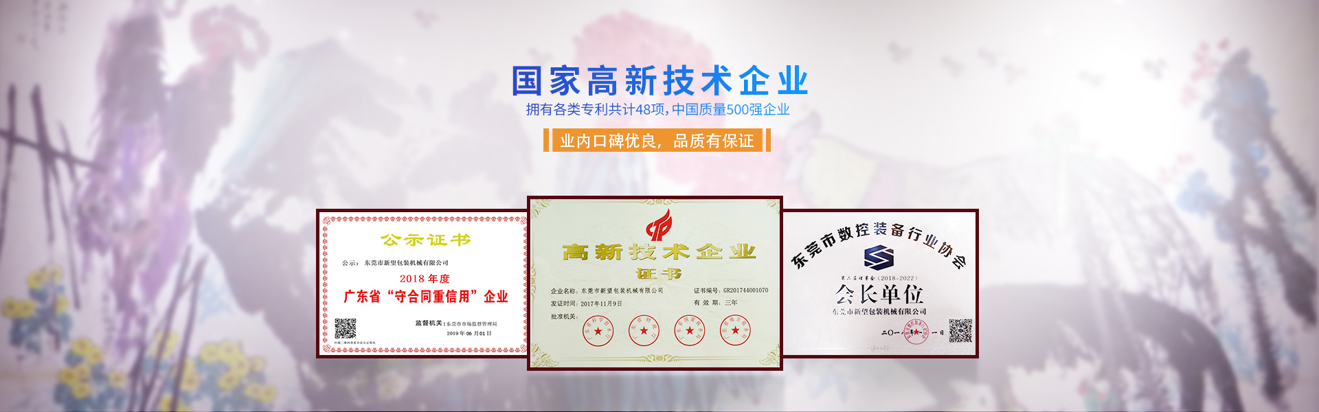 新望機(jī)械成立于1998年,位于東莞市東部工業(yè)園區(qū)的中心地帶——企石鎮(zhèn)東平村,交通方便、環(huán)境優(yōu)美舒適、視野開闊。公司注冊(cè)資本2000萬元,擁有辦公室、廠房等18,000多平方米。已通過ISO9001:2015國際質(zhì)量管理體系認(rèn)證,擁有國家各類專利共計(jì)58項(xiàng)。是東莞市企石鎮(zhèn)工商聯(lián)副會(huì)長(zhǎng)單位、東莞市企石鎮(zhèn)文學(xué)藝術(shù)界聯(lián)合會(huì)副主席單位、東莞市環(huán)保包裝行業(yè)協(xié)會(huì)副會(huì)長(zhǎng)單位、東莞市數(shù)控裝備行業(yè)協(xié)會(huì)第二屆會(huì)長(zhǎng)單位、廣東省包裝技術(shù)協(xié)會(huì)常務(wù)理事單位、廣東省膠粘劑行業(yè)協(xié)會(huì)理事單位、廣東省著名商標(biāo)企業(yè)、國家高新技術(shù)企業(yè)。
